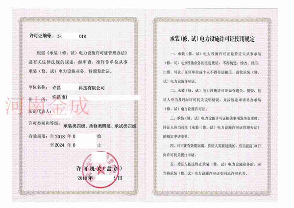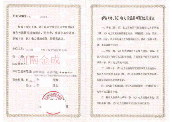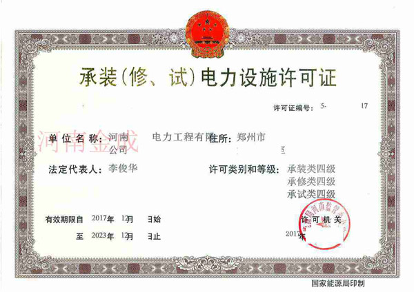 • 承裝(修、試)電力設施許可證